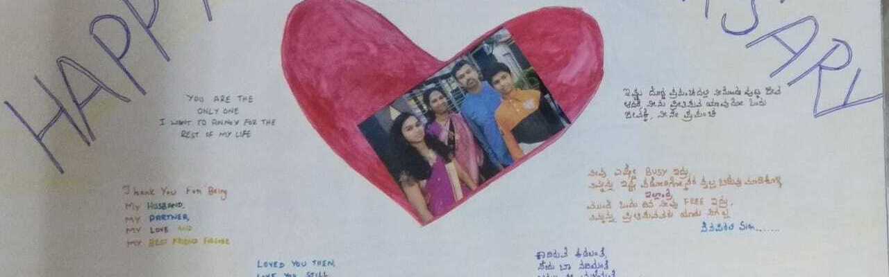 ಮಂಜುಳಾ, ವಿವಾಹದ ಇಪ್ಪತ್ತನೇ ವಾರ್ಷಿಕೋತ್ಸವಕ್ಕೆ ಹಾರ್ಧಿಕ ಶುಭಾಷಯಗಳು. ನಮ್ಮಿಬ್ಬರ ದಾಂಪತ್ಯ ಜೀವನ ಹೀಗೆಯೇ ನೂರ್ಕಾಲ ಸುಖಃಮಯವಾಗಿಟ್ಟಿರಲಿ ಎಂದು ಆ ಭಗವಂತನಲ್ಲಿ ಇಬ್ಬರು ಕೂಡಿ ಪ್ರಾರ್ಥಿಸುವಾ.