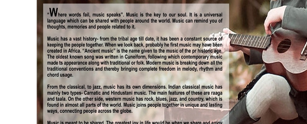 ಸುಖಃವಿರಲಿ, ದುಃಖವಿರಲಿ, ಭಾಷೆಯ ಗೊತ್ತಿಲ್ಲದಿದ್ದರೂ ಸಂವಹವಾಗಿ ಉಪಯೋಗಿಸಬಹುದಾದ ಏಕೈಕ ಸಾಧನವೆಂದರೆ ಸಂಗೀತ.