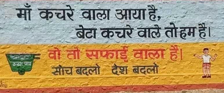 ಮಗ ತಾಯಿಗೆ ಕೂಗಿ ಹೇಳುತ್ತಾನೆ. ಅಮ್ಮಾ ಕಸದವರು ಬಂದಿದ್ದಾರೆ. ಅದಕ್ಕೆ ಮನೆಯೊಳಗಿನಿಂದ ತಾಯಿ ಶಾಂತಚಿತ್ತದಿಂದ ಮಗನಿಗೆ ತಿಳಿ ಹೇಳುತ್ತಾಳೆ. ಮಗೂ ಕಸದವರು ಅವರಲ್ಲ , ನಾವುಗಳು. ಅವರು  ನಾವು ಮಾಡಿದ ಕಸವನ್ನು ಸ್ವಚ್ಛ ಗೊಳಿಸಲು ಬಂದಿದ್ದಾರೆ. ಇನ್ನೊಬ್ಬರ ಕೆಲಸವನ್ನು ಹೀಯಾಳಿಸದೆ ನಮ್ಮ ಮನಸ್ಥಿತಿಯನ್ನು ನಮ್ಮ ದೃಷ್ಟಿಕೋನವನ್ನು ಬದಲಿಸಿ ನೋಡು ಎಲ್ಲವೂ ಸ್ಚಚ್ಚವಾಗಿ ಕಾಣುತ್ತದೆ ಎಂದು ‌ಸುಂದರವಾಗಿ ಸ್ವಚ್ಚತೆಯ ಬಗ್ಗೆ ಮಗನಿಗೆ ತಿಳಿಸಿ ಹೇಳುತ್ತಾಳೆ.