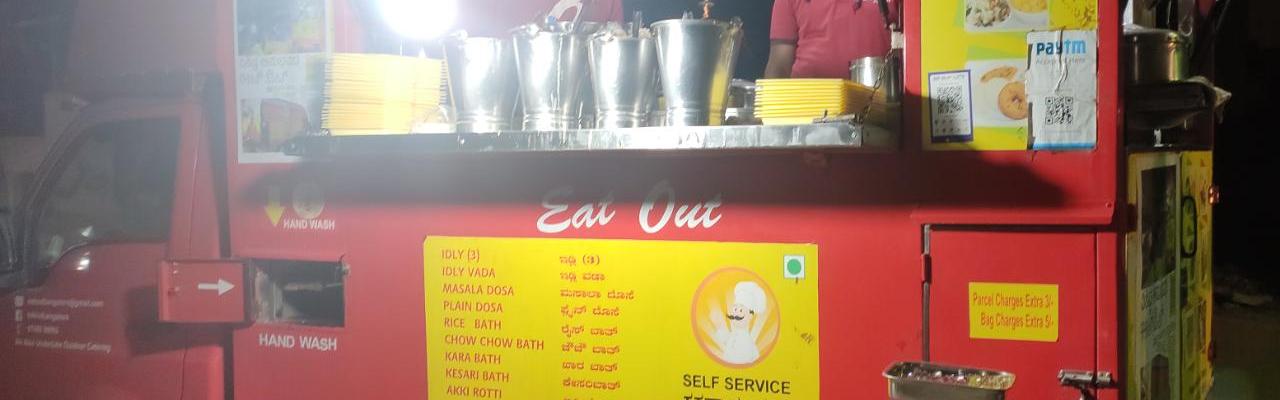 WhatsApp Image 2019-11-27 at 11.44.19 AMಅದೇ ರೀತಿ ಸಂಜೆಯ ಹೊತ್ತು ವಿದ್ಯಾರಣ್ಯಪುರದ ಕಡೆಯ ಬಸ್ ನಿಲ್ದಾಣದಿಂದ ಕೆಲವೇ ಹೆಜ್ಜೆಗಳು ನಡೆದರೆ ಸಾಕು, ಘಕ್ಕೆಂದು ನಮ್ಮ ಕಣ್ಣ ಮುಂದೆ ಕಾಣಸಿಗುತ್ತದೆ ಕೆಂಪು ಬಣ್ಣದ Eatout ಗಾಡಿ. ಶುಚಿ ರುಚಿಯಾದ  ಕೈಗೆಟುಕುವ ಬೆಲೆಯಲ್ಲಿ ತಟ್ಟನೆ ಏನನ್ನಾದರೂ  ತಿನ್ನಬೇಕೆಂದು ಬಯಸಿದ್ದಲ್ಲಿ Eatout ಹೇಳಿ ಮಾಡಿಸಿದ ಜಾಗ.  ಹಬೆ ಹಬೆಯ ಇಡ್ಲಿ, ಗರಿ ಗರಿ ಉದ್ದಿನ ವಡೆ, ಘಮ ಘಮ ಮಸಾಲೆ ದೋಸೆ, ಬಿಸಿ ಬಿಸಿ  ರೊಟ್ಟಿ, ನೂಲಿನಂತೆ  ನುಣುಪಾದ ಶ್ಯಾವಿಗೆ, ತರ ತರಹದ ಅನ್ನದ ಬಾತ್, ಸಿಹಿ ಸಿಹಿಯಾದ ಕೇಸರೀ ಬಾತ್,  ತರಕಾರಿಹಾಕಿದ ಉಪ್ಪಿಟ್ಟನ್ನು  ರುಚಿ ರುಚಿಯಾದ ಕೆಂಪು ಮತ್ತು ಹಸಿರು ಚೆಟ್ನಿಯೊಡನೆ ಚುಮು  ಚುಮು ಚಳಿಯಲ್ಲಿ ತಿನ್ನುತ್ತಿದ್ದರೆ ಸ್ವರ್ಗಕ್ಕೆ ಕಿಚ್ಚು ಹತ್ತಿದಂತೆ ಎಂದರೆ ಉತ್ಪ್ರೇಕ್ಷೆಯೇನಲ್ಲ. ಒಮ್ಮೆ ತಿಂದರೆ ಮತ್ತೊಮ್ಮೆ ಮಗದೊಮ್ಮೆ ತಿನ್ನಬೇಕೆಂದು ಬಯಸುವ ಜಾಗವೂ ಹೌದು.
