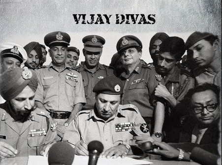 ಡಿಸೆಂಬರ್ 16, 1971 ನಿಜಕ್ಕೂ ನಮ್ಮ ಭಾರತದ ಮೂರೂ ಸೇನೆಗಳಿಗೆ ಅತ್ಯಂತ ಸ್ಮರಣಿಯ ದಿನ. ಇಡೀ ಪ್ರಪಂಚವೇ ನಮ್ಮ ವಿರುದ್ಧವಾಗಿದ್ದರೂ, ಸ್ವತಃ ಅಮೇರಿಕಾ ಹಿಂಬಾಗಿಲಿನಿಂದ ಪಾಕೀಸ್ಥಾನಕ್ಕೆ ಸಹಾಯ ಮಾಡುತ್ತಿದ್ದರೂ, ಯಾವುದೇ ರೀತಿಯ ಆಧುನಿಕ ಶಸ್ತ್ರಾಸ್ತ್ರಗಳು ನಮ್ಮ ಬಳಿ ಇಲ್ಲದಿದ್ದರೂ ನಮ್ಮ ಭೂ,ವಾಯು ಮತ್ತು ಜಲ ಸೇನೆಗಳು ಜಂಟಿಯಾಗಿ ಛಲದಿಂದ ಪಾಕೀಸ್ಥಾನದ ವಿರುದ್ಧ ಜನರಲ್ ಮಾಣಿಕ್ ಷಾ ಅವರ ನೇತೃತ್ವದಲ್ಲಿ ಹೋರಾಡಿ ಸುಮಾರು 93000ಕ್ಕೂಅಧಿಕ ಪಾಕೀ ಸೈನಿಕರನ್ನು ಸೆರೆಗೈದು ಇಂದಿನ ಬಾಂಗ್ಲಾದೇಶದ ಚಿತ್ತಗಾಂಗ್ನಲ್ಲಿ ಅಂದಿನ ಪೂರ್ವ ಪಾಕೀಸ್ಥಾನದ ಜೆನರಲ್ ಆಮೀರ್ ಅಬ್ದುಲ್ಲ ಖಾನ್ ನಮ್ಮ ಲೆ.ಜೆನರಲ್ ಜಗಜಿತ್ ಸಿಂಗ್ ಅರೋರಾ ಮುಂದೆ ಶರಣಾದ ಅಭೂತಪೂರ್ವದಿನ. ಅಂದು ಅವರಿಬ್ಬರೂ ಸಹಿ ಮಾಡಿದ್ದ ಲೇಖನಿ ಇಂದಿಗೂ ಸಹಾ ನಮ್ಮ ಮಿಲಿಟರಿ ಸಂಗ್ರಹಾಲಯದಲ್ಲಿ ನೋಡಬಹುದಾಗಿದೆ.