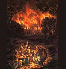 ಕೌರವರ ಆಹ್ವಾನದ ಮೇರೆಗೆ ಕುಂತೀ ಸಮೇತ ಪಾಂಡವರು ಕೌರವನ ವಾರಣಾವತ ಆಸ್ಥಾನಕ್ಕೆ ಬಂದು ಅಲ್ಲಿಯೇ ಇದ್ದ ಮಹಾಮಂತ್ರಿ ವಿಧುರನ ಆಶೀರ್ವಾದ ಪಡೆಯುತ್ತಾರೆ. ಆ ಸಂಧರ್ಭದಲ್ಲಿ ವಿಧುರನು ಧರ್ಮರಾಯನನ್ನು ಕುರಿತು ಒಂದು ಪ್ರಶ್ನೆ ಕೇಳುತ್ತಾನೆ. ಯುಧಿಷ್ಟಿರಾ, ಒಂದು ವೇಳೆ ಕಾಡಿನಲ್ಲಿ ಭಯಾನಕ ಕಾಡ್ಗಿಚ್ಚು ಉಂಟಾದಲ್ಲಿ, ಯಾವ ಯಾವ ಪ್ರಾಣಿ ಸುರಕ್ಷಿತವಾಗಿ ಉಳಿಯ ಬಹುದು? ಆಗ ಧರ್ಮರಾಯನು ಕಿಂಚಿತ್ತೂ ವಿಚಲಿತನಾಗದೇ, ಶಾಂತಚಿತ್ತದಿಂದ, ಕಾಡ್ಗಿಚ್ಚು ಹತ್ತಿಕೊಂಡಾಗ ಸ್ವಚ್ಛಂದವಾಗಿ, ನಿರ್ಭಯದಿಂದ ಸಂಚರಿಸುವ, ಸಿಂಹ, ಹುಲಿ, ಚಿರತೆ, ಆನೆ ಮತ್ತು ಎಲ್ಲಕ್ಕಿಂತ ವೇಗವಾಗಿ ಓಡುವ ಜಿಂಕೆಗಳು ಬೆಂಕಿಯಿಂದ ಸುಟ್ಟು ಕರಕಲಾಗುತ್ತವೆ. ಆದರೆ ಬಿಲದಲ್ಲಿರುವ ಸಣ್ಣ ಸಣ್ಣ ಪ್ರಾಣಿಗಳು ಬದುಕಿ ಉಳಿಯುತ್ತದೆ ಎಂದು ತಿಳಿಸುತ್ತಾನೆ. ಯುಧಿಷ್ಟಿರನ ಉತ್ತರದಿಂದ ಆಶ್ವರ್ಯ ಚಕಿತನಾಗಿ ಅದು ಹೇಗೆ ಯುಧಿಷ್ಟಿರಾ ಎಂದು ಕೇಳಿದಾಗ, ಕಾಳ್ಗಿಚ್ಚು ಹತ್ತಿಕೊಂಡಾಗ ವೇಗವಾಗಿ ಓಡುವ ಪ್ರಾಣಿಗಳು ದಿಕ್ಕಾಪಾಲಾಗಿ ಅತ್ತಿಂದಿತ್ತ ಓಡಾಡುತ್ತಲೇ ಯಾವ ಕಡೆ ಹೋಗುವುದೆಂದು ತಿಳಿಯದೆ ಬೆಂಕಿಯ ಕೆನ್ನಾಲಿಗೆ ಬಲಿಯಾಗುತ್ತವೆ. ಇನ್ನೂ ಹಲವಾರು ಸಣ್ಣ ಪ್ರಾಣಿಗಳು ದೊಡ್ಡ ದೊಡ್ಡ ಪ್ರಾಣಿಗಳ ಕಾಲ್ತುಳಿತಕ್ಕೆ ಸಿಕ್ಕಿಕೊಂಡೇ ಸತ್ತು ಹೋಗುತ್ತವೆ. ಆದರೆ ಬಿಲದಲ್ಲಿ ಅಡಗಿ ಕೊಳ್ಳುವ ಪ್ರಾಣಿಗಳು ಮಾತ್ರಾ, ಕಾಳ್ಗಿಚ್ಚು ಹತ್ತಿಕೊಂಡಾಗ ಬಿಲ ಸೇರಿಕೊಂಡು, ಬೆಂಕಿ ಪೂರ್ತೀ ನಂದಿದ ನಂತರವೇ ಬಿಲದಿಂದ ಹೊರ ಬಂದು ಸರಾಗವಾಗಿ ಜೀವನ ಸಾಗಿಸುತ್ತದೆ ಎಂದು ತಿಳಿಸುತ್ತಾನೆ. ಧರ್ಮರಾಯನ ಉತ್ತರದಿಂದ ಸಂತೃಪ್ತನಾದ ವಿಧುರನು ಕ್ಶೇಮವಾಗಿ ಹೋಗಿ ಲಾಭವಾಗಿ ಬನ್ನಿ ಎಂದು ಆಶೀರ್ವದಿಸಿ, ಭೀಮಸೇನನನ್ನು ಗುಟ್ಟಾಗಿ ಪಕ್ಕಕ್ಕೆ ಕರೆದುಕೊಂಡು ಹೋಗಿ ಲಾಕ್ಷಾ ಗೃಹದಲ್ಲಿ ಅಕಸ್ಮಾತ್ ಅವಘಡವೇನಾದರೂ ಸಂಭವಿಸಿದಲ್ಲಿ ಅರಮನೆಯಲ್ಲಿರುವ ಗುಪ್ತವಾದ ಸುರಂಗದಿಂದ ತಪ್ಪಿಸಿಕೊಂಡು ಕೆಲಕಾಲ ಹೊರಗೆಲ್ಲೂ ಕಾಣಿಸಿಕೊಳ್ಳದೇ ಜೀವವನ್ನು ಉಳಿಸಿಕೊಂಡು ಪರಿಸ್ಥಿತಿ ತಿಳಿಯಾದ ಮೇಲೆ ಕಾಣಿಸಿಕೊಳ್ಳಬೇಕೆಂದು ಸೂಚಿಸುತ್ತಾನೆ.