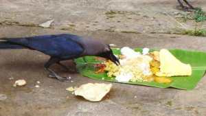 ಕಪ್ಪಗಿರುವ ಕಾಗೆ ಒಂದು ಸಾಧಾರಣವಾಗಿ ಎಲ್ಲಾ ಕಡೆಯಲ್ಲಿಯೂ ಕಾಣ ಸಿಗುವ ಪಕ್ಷಿ ಮತ್ತು ಅದು ಏನು ಬೇಕಾದರೂ ತಿನ್ನುತ್ತದೆ ಎನ್ನುವ ಕಾರಣದಿಂದ ಕೀಳರಿಮೆ ತೋರಿಸುತ್ತೇವೆ. ಕಾ ಎಂದರೆ ಕಾಪಾಡು ಅಥವಾ ನಮ್ಮನ್ನು ರಕ್ಷಿಸಿ. ಎಂದರ್ಥ. ಆದ್ದರಿಂದ ನಾವು ಕಾಗೆಗೆ ಆಹಾರವನ್ನು ನೀಡುವಾಗ “ಕಾ ಕಾ” ಎಂದು ಕರೆಯುವ ಮೂಲಕ ನಮ್ಮ ಪೂರ್ವಜರನ್ನು ನಮ್ಮನ್ನು ರಕ್ಷಿಸಲು ಬನ್ನಿ ಎಂದು ಕೋರುತ್ತೇವೆ.