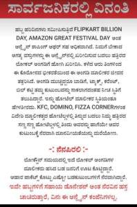 ಕೈಯ್ಯಲ್ಲಿ ಆಗದವನು ಮೈಯೆಲ್ಲಾ ಪರಚಿಕೊಂಡ ಎನ್ನುವಂತೆ ಕೆಲವು ವಿಕೃತ ಮನೋಭಾವದವರು ಈ online shopping ಕಂಪನಿಗಳ ಮೇಲೆ ತಲೆ ಬುಡವಿಲ್ಲದ ಇಲ್ಲ ಸಲ್ಲದ ಆರೋಪಗಳನ್ನು ಮಾಡುತ್ತಾ, ಇಂತಹವರ ಬಳೀ ಖರೀದಿಸುವ ಬದಲು ಸ್ಥಳೀಯ ವ್ಯಾಪಾರಿಗಳನ್ನು ಪ್ರೋತ್ಸಾಹಿಸಿ ನಮ್ಮ ಹಬ್ಬ ಹರಿದಿನಗಳಲ್ಲಿ, ಲಾಕ್ಡೊನ್ ಸಮಯದಲ್ಲಿ ಇದೇ ಸ್ಥಳೀಯ ವ್ಯಾಪಾರಿಗಳೇ ನೆರವಾಗಿದ್ದಾರೆ, ಈ online shopping ಕಂಪನಿಗಳು ಯಾವುದೇ ರೀತಿಯ ಸಹಾಯ ಮಾಡಿರುವುದಿಲ್ಲಾ.. ಹೀಗೇ.. ಹಾಗೆ ಎಂಬ ಸಂದೇಶಗಳನ್ನು ಹರಿದು ಬಿಡುತ್ತಾ ಸಮಾಜದ ಸ್ವಾಸ್ಧ್ಯವನ್ನು ಹಾಳುಮಾಡುತ್ತಿದ್ದಾರೆ ಎಂದರೂ ತಪ್ಪಾಗಲಾರದು.