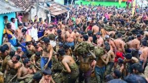 ನಂತರ ಊರಿನ ನೂರಾರು ಹುಡುಗರು ಮತ್ತು ಯುವಕರು, ಸಗಣಿಯ ರಾಶಿಯೊಳಗೆ ಬಿದ್ದು ಎದ್ದು ಹೊರಳಾಡಿದ ನಂತರ ಸುಮಾರು ಒಂದುವರೆ ಎರಡು ಗಂಟೆಗಳ ಅವರವರ ಇಚ್ಚೆಗೆ ಅನುಗುಣವಾಗಿ ದಪ್ಪ ದಪ್ಪ ಸಗಣಿ ಉಂಡೆ ಮಾಡಿಕೊಂಡು ಪರಸ್ಪರ ಮನಸೋ ಇಚ್ಚೆ ಬೈದಾಡುತ್ತಾ ಯಾವುದೇ ಜಾತಿ, ಅಂತಸ್ತು, ಮೇಲು ಕೀಳುಗಳೆಂಬ ಭಾವವಿಲ್ಲದೇ ಪರಸ್ಪರ ಎರೆಚಾಡುತ್ತಾ ಸಂಭ್ರಮಿಸುತ್ತಾರೆ. ಆ ಅಶ್ಲೀಲ ಬೈಗುಳವೆಲ್ಲವೂ ಕೇವಲ ಆ ಕ್ಷಣಕ್ಕೆ ಮಾತ್ರವೇ ಸೀಮಿತವಾಗಿದ್ದು ಹಬ್ಬ ಮುಗಿದ ನಂತರ ಎಲ್ಲರೂ ಪರಸ್ಪರ ಸ್ನೇಹಭಾವದಿಂದ ಸಹಬಾಳ್ವೆ ನಡೆಸುವುದು ಗಮನಾರ್ಹವಾಗಿದೆ.