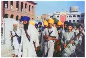 ಸ್ವರ್ಣ ಮಂದಿರದ ಅಕಾಲ್ ತಖ್ತಿನ ಸಂಕೀರ್ಣದಲ್ಲಿ ಸದ್ದಿಲ್ಲದೇ ಅಕ್ರಮವಾಗಿ ಮದ್ದು ಗುಂಡುಗಳು ಮತ್ತು ಆಧುನಿಕ ಶಸ್ತ್ರಾಸ್ತ್ರಗಳನ್ನು ಸಂಗ್ರಹಿಸತೊಡಗಿದ. ಹೇಳಿ ಕೇಳಿ ಖ್ಯಾತ ಧಾರ್ಮಿಕ ಕ್ಷೇತ್ರವಾಗಿದ್ದ ಕಾರಣ ಯಾರಿಗೂ ಇವರ ಕುಕೃತ್ಯದ ಮೇಲೆ ಅನುಮಾನವೇ ಬಿದ್ದಿರಲಿಲ್ಲ. ಇಲ್ಲಿಂದಲೇ, ಭಿಂದ್ರನ್ವಾಲೆ ತನ್ನ ಬಂಡುಕೋರ ಸಹಚರರಿಗೆ ಶಸ್ತ್ರಾಸ್ತ್ರಗಳನ್ನು ಸರಬರಾಜು ಮಾಡುತ್ತಾ ಎಂಭತ್ತರ ದಶಕದಲ್ಲಿ ಪಂಜಾಬ್ ಪ್ರಾಂತ್ಯದಲ್ಲಿ ಗೆರಿಲ್ಲಾ ಮಾದರಿಯ ಹೋರಾಟ ಮತ್ತು ದಂಗೆಯನ್ನು ಎಬ್ಬಿಸಿತೊಡಗಿದ್ದಲ್ಲದೇ ತನಗೆ ರಾಜಾಶ್ರಯ ನೀಡಿದ್ದ ಸ್ಥಳೀಯ ರಾಜಕೀಯ ನಾಯಕರುಗಳಿಗೇ ತಲೆನೋವಾಗಿದ್ದಲ್ಲದೇ, ಪ್ರತ್ಯೇಕ ಖಾಲಿಸ್ತಾನ ರಾಷ್ಟ್ರದ ಬೇಡಿಕೆ ಇಟ್ಟು ಅಮೃತಸರದ ಸ್ವರ್ಣಮಂದಿರವನ್ನು ವಶಪಡಿಸಿಕೊಂಡು ಸ್ವರ್ಣ ಮಂದಿರದಿಂದಲೇ ಹೋರಾಟವನ್ನು ಆರಂಭಿಸಿದ್ದಲ್ಲದೇ ಅಕ್ಷರಶಃ ಆತ ಅಲ್ಲಿಂದಲೇ ತನ್ನದೇ ಆದ ಪ್ರತ್ಯೇಕವಾದ ಸರಕಾರವನ್ನೇ ನಡೆಸುತ್ತಿದ್ದ ಎಂದರೆ ಅಚ್ಚರಿಯಾಗುತ್ತದೆ.