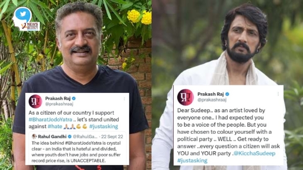 ಪ್ರಜಾಪ್ರಭುತ್ವದಲ್ಲಿ ಎಲ್ಲರಿಗೂ ಅಭಿವ್ಯಕ್ತಿ ಸ್ವಾತ್ರಂತ್ಯ್ರವಿದ್ದು ಅವವರ ಇಚ್ಚೆಗೆ ಅನುಗುಣವಾಗಿ ಯಾರಿಗೆ ಬೇಕಾದಾದರೂ ಮತವನ್ನು ಚಲಾಯಿಸಬಹುದು ಮತ್ತು ಯಾರನ್ನು ಬೇಕಾದರೂ ಸಮರ್ಥನೆ ಮಾಡಿಕೊಳ್ಳಬಹುದು ಅಥವಾ ಪ್ರಚಾರ ಮಾಡಬಹುದು ಎಂಬುದರ ಅರಿವಿದ್ದರೂ, ಇಂತಾ ತೋಲಾಂಡಿ ನಾಯಕರ ಮಾತುಗಳನ್ನೇಕೆ ಕೇಳಬೇಕು? ಪತ್ರಕರ್ತೆ ಗೌರಿ ಹೆಣ ಮುಂದೆ ಇಟ್ಟುಕೊಂಡು ಇದೇ JustAs(s)king ಆಭಿಯಾನ ಆರಂಭಿಸಿದ ಪರಕಾಚ, ತನ್ನ ರಾಜಕೀಯ ಬೇಳೆ ಬೇಯಿಸಿಕೊಳ್ಳುವ ಸಲುವಾಗಿ ದೇಶದ್ರೋಹಿಗಳನ್ನು ಸಮರ್ಥನೆ ಮಾಡುತ್ತಾ ಈ ದೇಶವನ್ನು ಮತ್ತೊಮ್ಮೆ ಧರ್ಮಾಧಾರಿತವಾಗಿ ಒಡೆಯಲು ಹುನ್ನಾರ ಮಾಡುತ್ತಿರುವ ತುಕ್ಡೇ ತುಕ್ಡೇ ಗ್ಯಾಂಗ್ ಪರ ವಹಿಸಿದ ಉದಾಹಣೆ ನಮ್ಮ ಕಣ್ಣ ಮುಂದಿದೆ. ಪರೋಕ್ಷವಾಗಿ ಸುದೀಪ್ ಹಣದ ಆಸೆಗಾಗಿ ಬಿಜೆಪಿಗೆ ಬೆಂಬಲ ಕೊಡುತ್ತಿದ್ದಾರೆ ಎಂದು ಆಪಾದನೆ ಮಾಡುತ್ತಿರುವ ಪ್ರಕಾಶ್ ರೈ, ಮೊನ್ನೆ ಮೊನ್ನೆಯಷ್ಟೇ ಈ ದೇಶವನ್ನು ಜೋಡಿಸ್ತೀನಿ ಎಂದು ದೇಶಾದ್ಯಂತ ಅಡ್ಡಾಡಿದ ರಾಹುಲ್ ಗಾಂಧಿಯ ಜೊತೆ ಪಾದಯಾತ್ರೆಯಲ್ಲಿ ಭಾಗವಹಿಸಿದ್ದಕ್ಕೆ ಎಷ್ಟು ಹಣ ಪಡೆದರು? ಎಂದು ಸಾಮಾನ್ಯ ಜನರೂ ಸಹಾ ಕೇಳಬಹುದಲ್ವೇ? ಸ್ವಭಾವತಃ ಕಮ್ಯೂನಿಸ್ಠ್ ಆಗಿದ್ದು ಈ ದೇಶವನ್ನು ಇಬ್ಬಾಗ ಮಾಡುವ ಮನಸ್ಥಿತಿಯ, ಆರು ಕೊಟ್ಟರೆ ಅತ್ತೇ ಕಡೇ ಮೂರು ಕೊಟ್ಟರೆ ಸೊಸೇ ಕಡೇ ಎನ್ನುತ್ತಾ ನಿರ್ಮಾಪಕ ಮತ್ತು ನಿರ್ದೇಶಕರ ಕಾಸಿಗೆ ತಕ್ಕಂತೆ ಕುಣಿಯುವ ಇಂತಹ ಗೋಸುಂಬೆ ಮನಸ್ಥಿತಿಯ ಆಂತರಿಕ ಶತ್ರುವನ್ನು ಜನರು ಮುಖಾ ಮುಲಾಜಿಲ್ಲದೇ ಠೇವಣಿ ಉಳಿಯದಂತೆ ಸೋಲಿಸಿದ್ದರೂ ಮತ್ತೆ ಮತ್ತೆ ದೇಶದಲ್ಲಿ ಆಂತರಿಕ ದಳ್ಳುರಿಯನ್ನು ಉಂಟು ಮಾಡಲು ಪ್ರಯತ್ನಿಸುತ್ತಿರುವುದು ಈ ದೇಶದ ಐಕ್ಯತೆಯ ದೃಷ್ಟಿಯಿಂದ ಮಾರಕವಾಗಿರುವುದು ನಿಜಕ್ಕೂ ವಿಪರ್ಯಾಸ.