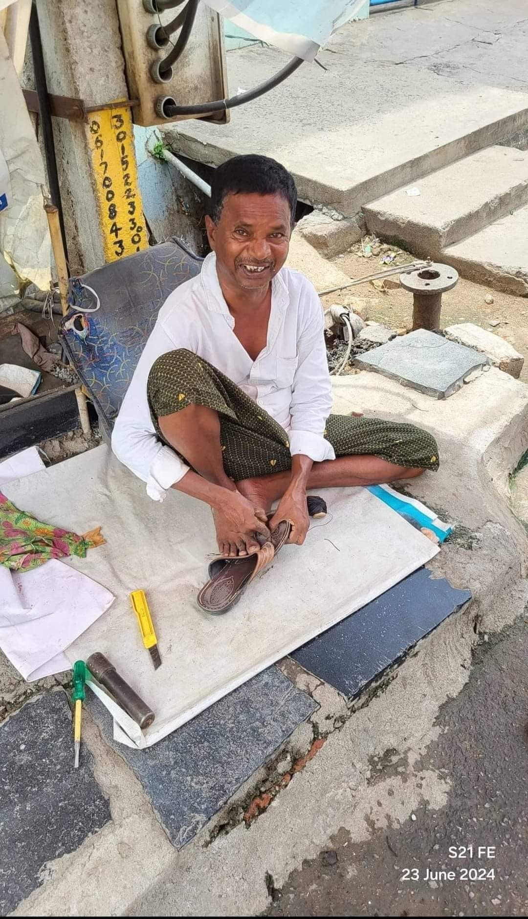ಹೌದು ನಿಜ. ಈಗ ನನಗೆ ಎಲ್ಲವೂ ಇದೆ. ನಾನು ಆರಾಮಾಗಿ ಜೀವನ ನಡೆಸಬಹುದು. ಆದರೆ ಒಂದು ಕಾಲದಲ್ಲಿ ಇದೇ ಕುಲ ಕಸುಬು ನಮಗೆ ಅನ್ನವನ್ನು ನೀಡಿದೆ. ನನ್ನ ತಂದೆಯವರು ಈ ರೀತಿಯಾಗಿ ಚಪ್ಪಲಿ ಹೊಲಿಯುತ್ತಿದ್ದಾಗ ಬರುತ್ತಿದ್ದ ಹಣವು ಮನೆಯ ನಿರ್ವಹಣೆಗೆ ಸಾಕಾಗದೇ ಹೋದಾಗ, ನಮ್ಮ ಅಮ್ಮಾ ಅವರಿವರ ಜಮೀನಿನಲ್ಲಿ ಕೂಲೀ ನಾಲಿ ಮಾಡಿ ನಮ್ಮನ್ನು ಸಾಕಿ ಸಲಹಿದ್ದಾಳೆ. ನಂತರ ನಾನು ದೊಡ್ಡವನಾದ ಮೇಲೆ ನಾನೂ ಸಹಾ ಇದೇ ಕುಲ ಕಸುಬಿನಿಂದಲೇ ಇಷ್ಟರ ಮಟ್ಟಿಗೆ ಬಂದಿದ್ದೀನಿ. ನಮ್ಮ ಮಕ್ಕಳು ಓದಿ ವಿದ್ಯಾವಂತರಾಗಿ ದೇಶ ವಿದೇಶಗಳ ದೊಡ್ಡ ದೊಡ್ಡ ಕಂಪನಿಯಲ್ಲಿ ಕೆಲಸಮಾಡುತ್ತಿರುವುದರಿಂದ ಖಂಡಿತವಾಗಿಯೂ ಅವರು ಈ ಕುಲ ಕಸುಬನ್ನು ಮುಂದುವರೆಸಲಾರರು. ಹಾಗಾಗಿ ಭಗವಂತ ನನ್ನ ಮೈಯ್ಯಲ್ಲಿ ಕಸುವು ನೀಡುವವರೆಗೂ ಇದೇ ಕೆಲಸವನ್ನು ಶ್ರದ್ಧಾ ಭಕ್ತಿಯಿಂದ ಮುಂದುವರೆಸಿಕೊಂಡು ಹೋಗುತ್ತೇನೆ. ಹಾಗಾಗಿ ನನಗೆ ಇದರಲ್ಲಿ ಹೆಚ್ಚಿನ ಆದಾಯ ಗಳಿಸುವ ಆಸೆಯೇನು ಇಲ್ಲಾ. ಇಲ್ಲಿ ನನಗೆ ಯಾರೂ ಹೇಳುವವರಿಲ್ಲಾ. ಕೇಳುವವರಿಲ್ಲಾ. ಯಾವುದೇ ವಾರಗಳ ಲೆಕ್ಕವಿಲ್ಲದೇ ಪ್ರತೀ ದಿನವು ಬೆಳಗ್ಗೆಯಿಂದ ಸಂಜೆ ಕತ್ತಲಾಗುವವರೆಗೂ ಇಲ್ಲಿಗೆ ಬಂದು ನನ್ನ ಕಾಯಕವನ್ನು ಮಾಡುತ್ತೇನೆ ಮತ್ತು ಜನರು ಕೊಟ್ಟದ್ದನ್ನು ಸಂತೋಷವಾಗಿ ತೆಗೆದುಕೊಳ್ಳುತ್ತೇನೆ. ಎಂದು ಹೇಳಿದರು. ಅದಕ್ಕೆ ಪುರಾವೆ ಎನ್ನುವಂತೆ ಈ ಮೊದಲು ಚಪ್ಪಲಿಯನ್ನು ಸರಿಮಾಡಿಸಿಕೊಂಡು ೨೦೦ರೂಪಾಯಿಗಳನ್ನು ನೀಡಿದಾಗ, ಸದ್ಯಕ್ಕೆ ನನ್ನ ಬಳಿ ಚಿಲ್ಲರೆ ಇಲ್ಲಾ. ಮುಂದೆ ಎಂದಾದರೂ ಈ ಕಡೆ ಬಂದಾಗ ಕೊಡುವಿರಂತೆ ಎಂದು ಹೇಳಿದ್ದು ಆ ಹಿರಿಯರಿಗೆ ನೆನಪಾಯಿತು.