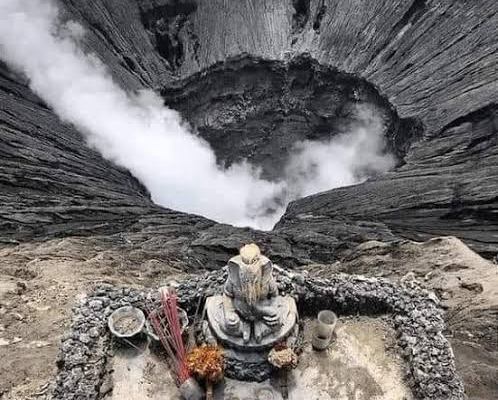 ಮುಸ್ಲಿಂ ಬಾಹುಳ್ಯದ ಇಂಡೋನೇಷ್ಯಾದಲ್ಲಿ ಒಟ್ಟು 141 ಜ್ವಾಲಾಮುಖಿಗಳಲ್ಲಿದ್ದು ಅವುಗಳಲ್ಲಿ ಸುಮಾರು 130 ಜ್ವಾಲಾಮುಖಿಗಳು ಇಂದಿಗೂ ಸಹಾ ಸಕ್ರಿಯವಾಗಿದ್ದು ಅಲ್ಲಿಂದ ಹೊಗೆಯಾಡುತ್ತಲೇ ಇರುತ್ತದೆ. ಕೆಲವೊಮ್ಮೆ ಸಣ್ಣ ಪ್ರಮಾಣದಲ್ಲಿ ಜ್ವಾಲಾರಸಗಳೂ ಉಕ್ಕಿ ಬರುವುದನ್ನು ಕಾಣಬಹುದಾಗಿದೆ. ಅಂತಹ ಜ್ವಾಲಾಮುಖಿಗಳಲ್ಲಿ ಮೌಂಟ್ ಬ್ರೋಮೋ ಪ್ರದೇಶದ ಪೂರ್ವ ಜಾವಾ ಪ್ರಾಂತ್ಯದ ಬ್ರೋಮೊ ಟೆಂಗರ್ ಸೆಮೆರು ರಾಷ್ಟ್ರೀಯ ಉದ್ಯಾನವನದಲ್ಲಿ ಸುಮಾರು 700 ವರ್ಷಗಳಷ್ಟು ಹಳೆಯದಾದ ಜೀವಂತ ಜ್ವಾಲಾಮುಖಿಯ ಕುಂಡವಿದ್ದು ಅದರ ಆವರಣದಲ್ಲೇ ದೊಡ್ಡದಾದ ಗಣೇಶನ ಪ್ರತಿಮೆಯಿದೆ. ಸ್ಥಳೀಯರ ಪ್ರಕಾರ ಈ ಪ್ರತಿಮೆ 700 ವರ್ಷಗಳಿಂದ ಇದ್ದು, ಆ ಗಣೇಶ ಜ್ವಾಲಾಮುಖಿಯ ಸ್ಫೋಟದಿಂದ ಅಲ್ಲಿಯವರನ್ನು ರಕ್ಷಿಸುತ್ತಾನೆ ಎಂದೇ ನಂಬುತ್ತಾರೆ. ಹಾಗಾಗಿ ಪ್ರತಿದಿನವೂ ತಪ್ಪದೇ ಆ ಗಣೇಶನಿಗೆ ಯಥಾಶಕ್ತಿ ಪೂಜೆ ಪುನಸ್ಕಾರಗಳು ಇಂದಿಗೂ ನಡೆಯುತ್ತಿರುವುದು ವಿಶೇಷವಾಗಿದೆ.