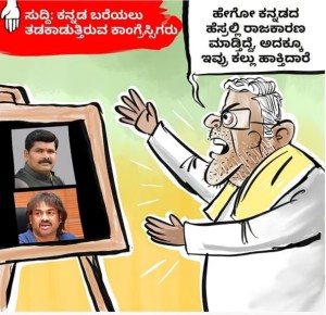 ಬಿಟ್ಟಿ ಭಾಗ್ಯಗಳನ್ನು ಕೊಟ್ಟರೆ ಸಾಕು ಹಾಕಿದ ಬಿಸ್ಕತ್ತನ್ನು ತಿಂದು ಬಿದ್ದುಕೊಳ್ಳುವ ಹಾಗೆ ಕನ್ನಡಿಗರು ಬಿದ್ದುಕೊಳ್ಳುತ್ತಾರೆ. ತಾವು ಏನು ಮಾಡಿದರೂ ಸಹಿಸಿಕೊಳ್ಳುತ್ತಾರೆ ಎಂಬು ಧೋರಣೆಯನ್ನು ಈ ಸಿದ್ದರಾಮಯ್ಯನವರ ಸರ್ಕಾರ ತಳೆದಿದೆ ಎಂದರೂ ಅತಿಶಯವಾಗದು. ಇದಕ್ಕೆ ಪೂರಕ ಎನ್ನುವಂತೆ ಶಾಲೆಗಳ ನವೀಕರಣ ಮತ್ತು ಉನ್ನತೀಕರಣದ ಹೆಸರಿನಲ್ಲಿ ಕನ್ನಡ ಶಾಲೆಗಳನ್ನು ಮುಚ್ಚಿ ಆ ಜಾಗದಲ್ಲಿ ಖಾಸಗಿ ಒಡೆತನದ ಹೈಟೆಕ್ ಶಾಲೆಗಳನ್ನು ತೆರೆಯಲು ಮುಂದಾಗಿರುವ ಈ ಸರ್ಕಾರ ಕರ್ನಾತಕದಲ್ಲಿ ಕನ್ನಡವನ್ನು ಸಂಪೂರ್ಣವಾಗಿ ಗುಡಿಸಿ ಸಾರಿಸಿ ರಂಗೋಲಿ ಇಡಲು ಹೊರಟಿದೆ ಎಂದು ಜನರು ಆಡಿಕೊಳ್ಳುತ್ತಿರುವುದರಲ್ಲಿ ಸತ್ಯವಿದೆ ಎಂದೆನಿಸುತ್ತಿದೆ.