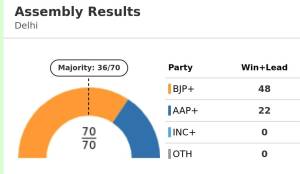 2025 ಫೆಬ್ರವರಿ 5ರಂದು ದೇಶದ ರಾಜಧಾನಿ ದೆಹಲಿಯಲ್ಲಿ ನಡೆದ ವಿಧಾನಸಭಾ ಚುನಾವಣೆಯಲ್ಲಿ ಎರಡು ಬಾರಿ ಅಧಿಕಾರವನ್ನು ಸವಿದು ಮೂರನೇ ಬಾರಿಗೆ ಹ್ಯಾಟ್ರಿಕ್ ಸಾಧಿಸಲು ಮುನ್ನುಗ್ಗುತ್ತಿದ ಆಮ್ ಆದ್ಮೀ ಪಕ್ಷಕ್ಕೆ 27 ವರ್ಷಗಳ ನಂತರ ಅಭೂತಪೂರ್ವವಾಗಿ ಬಿಜೆಪಿ ಜನ ಮನ್ನಣೆಗಳಿಸುವ ಮೂಲಕ ಲಗಾಮು ಹಾಕಿದ್ದು, ಎಂದಿನಂತೆ ಉತ್ತರ ಪೌರುಷ ಒಲೆ ಮುಂದೆ ಎನ್ನುವಂತೆ ರಾಹುಲ್ ಗಾಂಧಿ ನೇತೃತ್ವದ ಕಾಂಗ್ರೇಸ್ ಸೊನ್ನೆ ಗಳಿಸುವುದರಲ್ಲಿ ಡಬಲ್ ಹ್ಯಾಟ್ರಿಕ್ ಗಳಿಸಿದೆ.