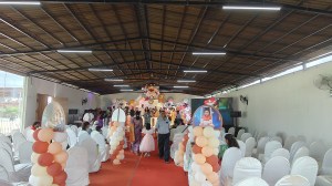ನಾನು ಹೋಗುವಷ್ಟರಲ್ಲೇ ಹಲವಾರು ಐಶಾರಾಮಿ ಕಾರುಗಳಲ್ಲಿ ನೂರಾರು ಜನರಿಂದ ಕಿಕ್ಕಿರಿದು ತುಂಬಿದ್ದ ಸಭಾಂಗಣದಲ್ಲಿ Event managementನವರು ಮಕ್ಕಳು ಮತ್ತು ದೊಡ್ಡವರಿಗೆ ಬಗೆ ಬಗೆಯ ಆಟವಾಡಿಸುತ್ತಿದ್ದರೆ, ನಂತರ ವಿವಿಧ ರಾಜಕಾರಣಿಗಳು, ನಟ ನಟಿಯರ ವಿಮಿಕ್ರಿ ಸಹಾ ಎಲ್ಲರ ಮನ ರಂಜಿಸಿತು. ಇವೆಲ್ಲ ಅಗುವಷ್ಟರಲ್ಲಿ ಮೋಡಗಳ ಮಧ್ಯೆ ಪುಟ್ಟ ಕಾರಿನಲ್ಲಿ ಪುಟಾಣಿ ಲಿಯಾಂಶ್ ಬರುವಂತಹ ಕೃತಕ ಸನ್ನಿವೇಶವಂತೂ ಎಲ್ಲರನ್ನೂ ಆಕರ್ಷಿಸಿದ್ದಂತೂ ಸುಳ್ಳಲ್ಲಾ. ಆ ನಂತರ ಎಲ್ಲಾ ಹುಟ್ಟಿದ ಹಬ್ಬಗಳಲ್ಲಿ ನಡೆಯುವಂತೆ ಯಥಾ ಪ್ರಕಾರ ಬಂದ ಮಕ್ಕಳೆಲ್ಲರಿಗೂ ಬಣ್ಣ ಬಣ್ಣದ ಟೋಪಿ ಮತ್ತು ಕಣ್ಣಿಗೆ ಮಾಸ್ಕ್ ಹಾಕಿಸಿ ಕೇಕ್ ಕತ್ತರಿಸಿ ಸಂಭ್ರಮ ಪಟ್ಟು, ಮಕ್ಕಳಿಗೆ ಒಂದು ಕಡೆ ಚಂದನೆಯ Return gift ಕೊಡುತ್ತಿದ್ದರೆ ಇನ್ನು ಮತ್ತೊಂದು ಕಡೆ ಮಗುವಿಗೆ ಶುಭಾಶಯ ಕೋರಿ ಉಡುಗೊರೆ ಕೊಡುವುದಕ್ಕೇ ಹನುಮಂತನ ಬಾಲದಷ್ಟು ದೊಡ್ಡ ಸರದಿಯ ಸಾಲಿತ್ತು ಎಂದರೆ ಅದು ಎಷ್ಟು ಅದ್ದೂರಿಯಾದ ಸಮಾರಂಭವಾಗಿತ್ತು ಎಂಬುದರ ಕಲ್ಪನೆ ಬರುತ್ತದೆ.