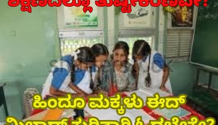 ?ಹೀಗೆ ಸುಮ್ಮನೇ ಇದ್ರೇ, ಇವತ್ತು ಹಬ್ಬಗಳ ಬಗ್ಗೆ ತಿಳಿದುಕೊಳ್ಳಿ ಎಂದು ಅಧಿಕೃತ ಸರ್ಕಾರಿ ಆದೇಶಗಳನ್ನು ನೀಡುವವರು ಮುಂದೇ ಪ್ರತೀ ಶುಕ್ರವಾರ ಮಧ್ಯಾಹ್ನ ನಮಾಜ್ ಮಾಡಿ ಎಂದು ತಾಕೀತು ಮಾಡಿದರೂ ಅಚ್ಚರಿ ಪಡಬೇಕಿಲ್ಲ. ಅದೇ ರೀತಿ ಕ್ರಿಶ್ಚಿಯನ್ ಸಂಸ್ಕಾರದಂತೆ, ಈಗಾಗಲೇ ಅನೇಕ ಶಾಲೆಗಳಲ್ಲಿ ಜಡೆ ಹಾಕಿಕೊಂಡು ಬರಬಾರದು, ಹೂವು ಮುಡೀಬಾರದು, ಕೈಗ ಬಳೆ ಹಾಕಿಕೊಂಡು ಬರಬಾರದು. ಕಿವಿಗೆ ಜಿಮ್ಕಿ ಹಾಕಿಕೊಂಡು ಬರಬಾರದು, ಎಷ್ಟೋ ಶಾಲೆಗಳಲ್ಲಿ ಕೆನ್ನೆಗೆ ಅರಿಶಿನ ಮತ್ತು ಹಣೆಯಲ್ಲಿ ಕುಂಕುಮ ಇಟ್ಟು ಬರಬಾರದು ಎಂಬ ಅಲಿಖಿತ ನಿಯಮಗಳು ಇರುವುದು ಈಗ ಗುಟ್ಟಾಗಿಯೇನೂ ಉಳಿದಿದಲ್ಲ. ಹೋಲಿ ಹಬ್ಬದಂದು ಬಣ್ಣದ ಆಟ ಆಡಬಾರದು ನಮ್ಮ ಕೃಷ್ಣ ಜನ್ಮಾಷ್ಠಮಿಯಂದು ಕೃಷ್ಣನ ಬಟ್ಟೆ ಹಾಕಿಕೊಂಡು ಬರಬಾರದು ಎಂದು ಹೇಳುವವರೇ, ಕ್ರಿಸ್ಮಸ್ ಹಬ್ಬದ ಸಮಯದಲ್ಲಿ hollyvins day, secreate santa & Santaclass ಬಟ್ಟೆಗಳನ್ನು ಹಾಕಿಸಿ ಪರಸ್ಪರ ಉಡುಗೊರೆಗಳನ್ನು ವಿನಿಯೋಗ ಮಾಡಿಸುವುದಲ್ಲದೇ, ಜನವರಿ 1 ರಂದು ಅದ್ದೂರಿಯಾಗಿ ಶಾಲೆಯನ್ನು ಬಣ್ಣ ಬಣ್ಣಗಳಿಂದ ಅಲಂಕರಿಸಿ ನಮ್ಮ ಮಕ್ಕಳ ಬಾಯಿಯಿಂದಲೇ Happy New Years ಹೇಳಿಸುವ ಮೂಲಕ ನಿಧಾನವಾಗಿ ನಮ್ಮ ಸನಾತನ ಸಂಸ್ಜಾರ ಮತ್ತು ಸಂಸ್ಜೃತಿಗಳನ್ನು ನಮ್ಮ ಮಕ್ಕಳಿಂದ ದೂರ ಇರಿಸುತ್ತಿರುವುದನ್ನು ಮನಗಂಡು ಇಂತಹ ದುರುದ್ದೇಶಗಳನ್ನು ಆರಂಭದಲ್ಲೇ ಚಿವುಟಿ ಹಾಕಲು ಎಲ್ಲರೂ ಒಗ್ಗೂಡಬೇಕಲ್ವೇ?