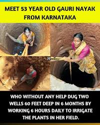 ಹವಾಮಾನ ವೈಪರೀತ್ಯದಿಂದ ಮತ್ತು ಓಝೋನ್ ಪದರಗಳ ನಾಶದಿಂದ ಪರಿಸರದ ಮೇಲೇ ಭಾರೀ ಪ್ರಮಾಣದಲ್ಲಿ ಹಾನಿಯಾಗಿ ಕಾಲಕಾಲಕ್ಕೆ ಆಗಬೇಕಿದ್ದ ಮಳೆಯೇ ಬಾರದೇ ಹೋದಾಗ, ಮಳೆಯನ್ನೇ ಅವಲಂಭಿಸಿ ಕೃಷಿ ಚಟುವಟಿಕೆಗಳನ್ನು ನಡೆಸುವ ಸಣ್ಣ ಪುಟ್ಟ ರೈತರಿಗೆ ಬಹಳವಾಗಿ ತೊಂದರೆ ಆಗುತ್ತದೆ. ಅದೇ ರೀತಿಯಲ್ಲಿ ಉತ್ತರ ಕನ್ನಡ ಜಿಲ್ಲೆಯ ಶಿರಸಿಯ ಗಣೇಶ ನಗರದ ಸುಮಾರು 52 ವರ್ಷದ ಶ್ರೀಮತಿ ಗೌರಿ ನಾಯಕ್ ಅವರ ಬಳಿ ಕೇವಲ 6 ಗುಂಟೆ ತೋಟ ಇದ್ದು ಮಳೆಯ ನೀರಿನ ಕೊರತೆಯಿಂದಾಗಿ ಅವರೇ ನೆಟ್ಟ ಬಾಳೆ, ತೆಂಗು, ಅಡಕೆ ಗಿಡಗಳು ಒಣಗುತ್ತಿರುವುದನ್ನು ನೋಡಲಾರದೆ, ಕೃಷಿ ಚಟುವಟಿಕೆಗಳನ್ನು ಮಾಡಲಾಗದೇ ಹೋದಾಗ, ತಮ್ಮ ಬಳಿ ಭಾವಿ ಇದ್ದಲ್ಲಿ ಅದರ ಮೂಲಕ ನೀರನ್ನು ಸೇದಿ ತಮ್ಮ ಕೃಷಿಯನ್ನು ಮುಂದುವರೆಸಬಹುದು ಎಂಬ ಆಲೋಚನೆ ಇತ್ತು. ಆದರೆ ಭಾವಿಯನ್ನು ತೋಡಿಸುವಷ್ಟು ಆರ್ಥಿಕವಾಗಿ ಸಧೃಢರಾಗಿರದೇ ಇದ್ದ ಕಾರಣ, ಆಗದು ಎಂದು ಕೈ ಕಟ್ಟಿ ಕುಳಿತರೆ ಸಾಗದು ಕೆಲಸವು ಮುಂದೆ!! ಎಂಬ ಸಾಲಿನಂತೆ ವಿಧಿ ಇಲ್ಲದೇ, ಸ್ವತಃ ಹಾರೇ ಪಿಕಾಸಿ ಮತ್ತು ಗುದ್ದಲಿಯಂತಹ ಸಲಕರಣೆ ಹಿಡಿದು ತಮ್ಮ ಮಕ್ಕಳ ಸಹಾಯವನ್ನೂ ಪಡೆಯದೇ, ಯಾರೊಬ್ಬರಿಗೂ ಹೇಳಿದೇ ತಮ್ಮ ಮನೆಯ ಹಿಂಭಾಗದ ಹಿತ್ತಲಿನಲ್ಲಿ ಮಗನಿಗೆ ತಿಳಿದರೆ ಆತ ಕೋಪಗೊಂಡು ಬೈಯ್ಯಬಹುದು ಎಂದೆಣಿಸಿ, ಯಾರ ಸಹಾಯವನ್ನೂ ಪಡೆಯದೇ ಅಲ್ಲಿನ ಅಂತರ್ಜಲದ ಮಟ್ಟವನ್ನು ಅರಿಯದೇ ತಾವೊಬ್ಬರೇ ಮಣ್ಣುನ್ನು ಅಗೆಯುವುದು, ಅಗೆದ ಮಣ್ಣನ್ನು ಮೇಲಕ್ಕೆತ್ತುವುದು ಮತ್ತು ಅದನ್ನು ಹೊತ್ತು ಮತ್ತೊಂದು ಕಡೆ ಸಾಗಿಸಿವುದು ಹೀಗೆ ಎಲ್ಲಾ ಕೆಲಸಗಳನ್ನು ಸುಮಾರು 4-5 ತಿಂಗಳ ಕಾಲ ಹಗಲು ರಾತ್ರಿ ಎನ್ನದೆ ಪಾತಾಳದಿಂದ ನೀರು ಉಕ್ಕಿ ಬರುವವರೆಗೂ ತೋಡಿ ಅಂತಿಮವಾಗಿ ಬರೋಬ್ಬರಿ 8 ಅಡಿ ಅಗಲ ಮತ್ತು 60 ಅಡಿ ಆಳದ ಬಾವಿಯನ್ನು ತೋಡಿ, ಎಲ್ಲರನ್ನೂ ನಿಬ್ಬೆರಗಾಗುವಂತೆ ಮಾಡುವ ಮೂಲಕ ಆಧುನಿಕ ಭಾಗೀರಥಿ ಎಂಬ ಸಾಧನೆಗೆ ಪಾತ್ರರಾಗಿದ್ದಾರೆ.