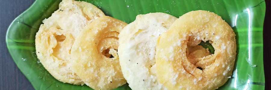 ಕರ್ನಾಟಕದ ಅತ್ಯಂತ ಸಾಂಪ್ರದಾಯಕವಾದ, ರುಚಿಕರವಾದ ಚಿರೋಟಿಯನ್ನು ಮನೆಯಲ್ಲಿಯೇ ಸಾಂಪ್ರದಾಯಕವಾಗಿ ತಯಾರಿಸುವ ವಿಧಾನವನ್ನು ನಮ್ಮ ಅನ್ನಪೂರ್ಣಾ ಮಾಲಿಕೆಯ ಮೂಲಕ ತಿಳಿದು ಕೊಳ್ಳೋಣ. ಸುಮಾರು 10-12 ಚಿರೋಟಿಗಳನ್ನು ಮಾಡಲು ಬೇಕಾಗುವಂತಹ ಸಾಮಗ್ರಿಗಳು • ಚಿರೋಟಿ ರವೆ – 1 ಬಟ್ಟಲು • ಅಕ್ಕಿ ಹಿಟ್ಟು – 1/2 ಬಟ್ಟಲು • ಸಕ್ಕರೆ ಪುಡಿ – 1 ಬಟ್ಟಲು • ತುಪ್ಪ – 2-3 ಚಮಚ ಚಿರೋಟಿ ಮಾಡುವ ವಿಧಾನ : ಮೊದಲನೇ ಹಂತ ಹಿಟ್ಟನ್ನು ಸಿದ್ದ ಮಾಡಿಕೊಳ್ಳುವ ವಿಧಾನ •… Read More ಚಿರೋಟಿ
