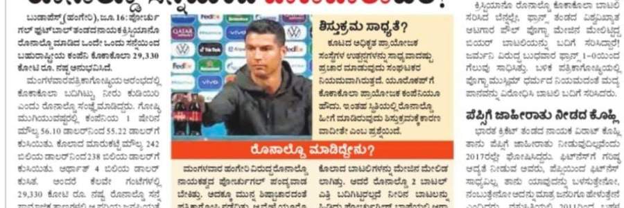 ಪೋರ್ಚುಗಲ್ ನಲ್ಲಿ ನಡೆಯುತ್ತಿರುವ ಯೂರೋ 2020 ಟೂರ್ನಿಯಲ್ಲಿ ಪೋರ್ಚುಗಲ್ ತನ್ನ ಮೊದಲ ಪಂದ್ಯವನ್ನು ಆಡುತ್ತಲಿತ್ತು. ಸಹಜವಾಗಿ ಪಂದ್ಯ ಆಡುವ ಮುನ್ನ ತಂಡದ ಮ್ಯಾನೇಜರ್ ಮತ್ತು ತಂಡದ ನಾಯಕರ ಪ್ರೆಸ್ ಕಾನ್ಫರೆನ್ಸ್ ಮಾಡುವುದು ಸಹಜ ಪ್ರಕ್ರಿಯೆಯಾಗಿದೆ. ಈ ಸಂವಾದ ಪ್ರಪಂಚಾದ್ಯಂತ ಪ್ರಸಾರವಾಗುವ ಕಾರಣ, ಟೂರ್ನಿಯ ಪ್ರಾಯೋಜಕರಾದ ಕೋಕೋಕೋಲ ಇದರ ಪ್ರಯೋಜನವನ್ನು ಪಡೆಯುವ ಸಲುವಾಗಿ ಸಂವಾದ ನಡೆಸುವವರ ಟೇಬಲ್ ಮುಂದೆ ಸಣ್ಣದಾದ ಎರಡು ಕೋಕ್ ಬಾಟಲ್ ಗಳನ್ನು ಇಟ್ಟಿದ್ದರು. ಮೊದಲು ಈ ಮಾಧ್ಯಮ ಸಂವಾದದಲ್ಲಿ ಭಾಗವಹಿಸಿದ ಪೋರ್ಚುಗಲ್ ತಂಡದ ಮ್ಯಾನೇಜರ್… Read More ನೀರು ಓಕೆ. ಕೃತಕ‌ ಪಾನೀಯ ಏಕೆ?